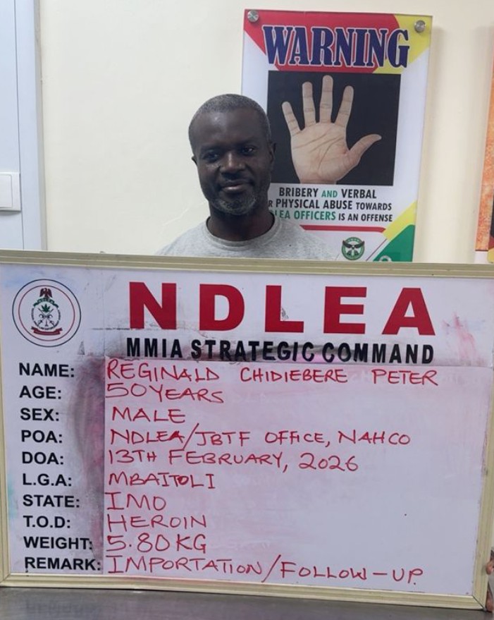After 13 years in hiding, a notorious drug kingpin Reginald Peter Chidiebere has been taken into custody following the seizure of large consignments of cocaine and heroin linked to him by operatives of the National Drug Law Enforcement Agency (NDLEA) at the Murtala Muhammed International Airport (MMIA) Ikeja Lagos.